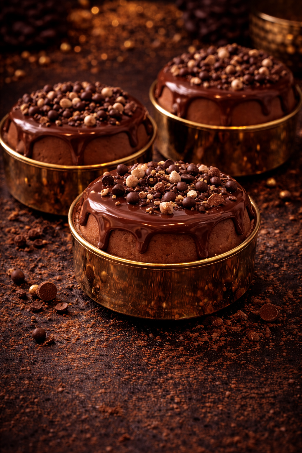 Flan onctueux au cacao et noisette, délicatement fondant, offrant une douceur intense et raffinée.