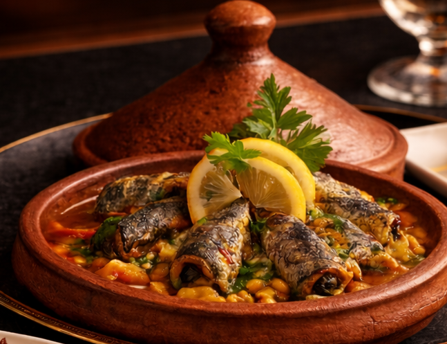 Sardines mijotées en sauce tomate, herbes italiennes et olives.