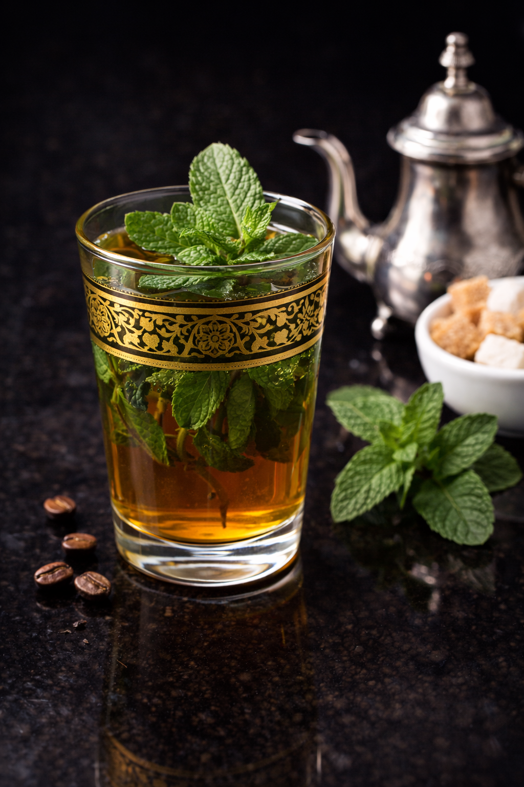 Thé vert infusé à la menthe fraîche.